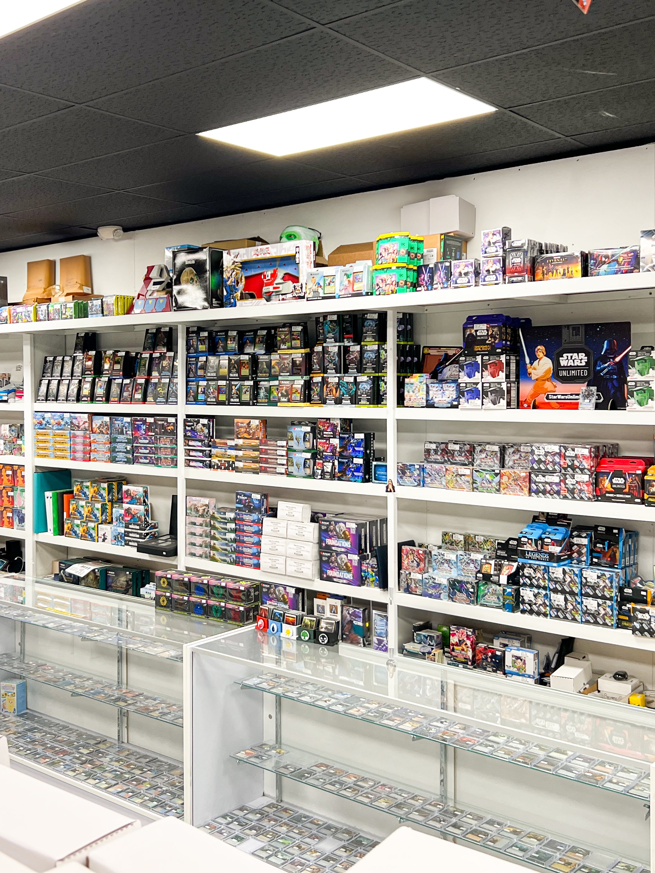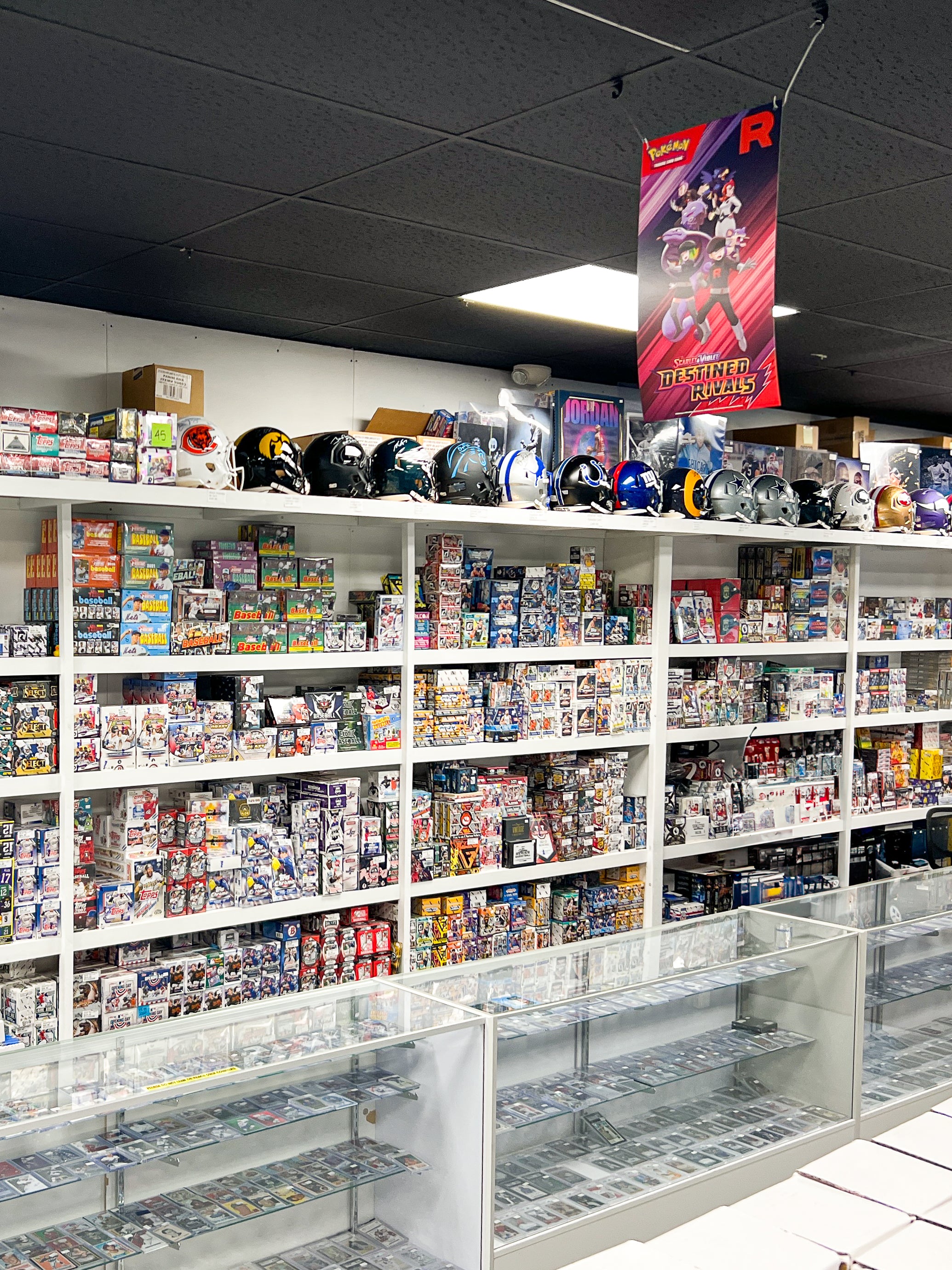 If your happy place smells like fresh booster packs, new slab labels, or that faint whiff of vinyl sleeves, you’re in the right spot. Our newest location (opened February 2025) is home to the largest selection of sports card singles and sealed product in the entire metro — plus a TCG lineup that would make any Pokémon trainer, Magic planeswalker, or Digimon tamer break into a victory dance.